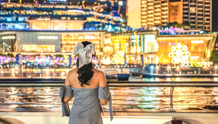 Cruzeiro de luxo com jantar | Opção de luxo: você pode usar o branco | Píer 4 ICONSIAM | 8:15pm-10:15pm (2 horas) | Buffet internacional e de frutos do mar | Cabaré, dança tailandesa |